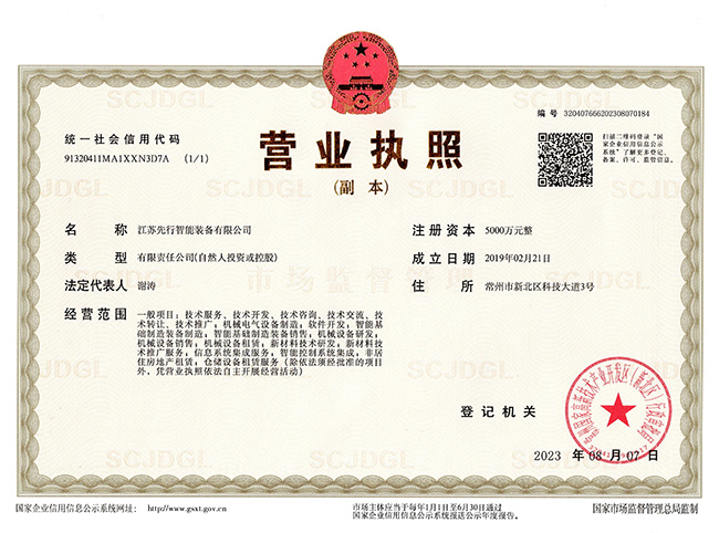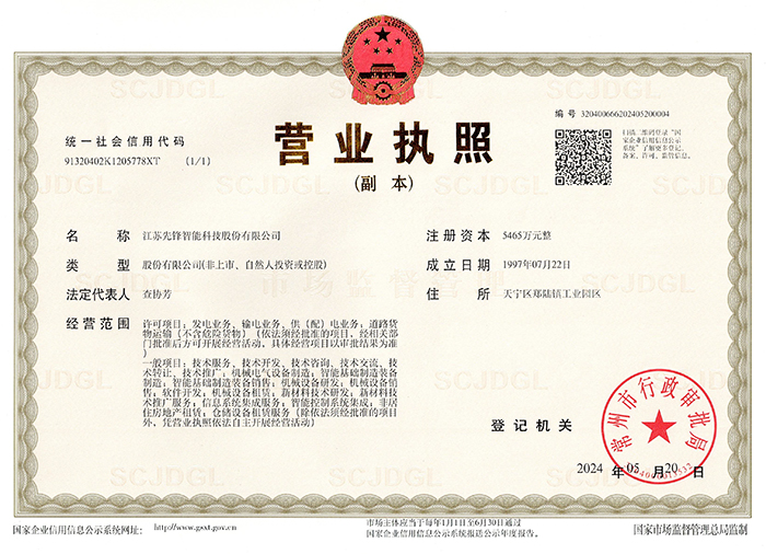 • 江苏先锋智能高企证书