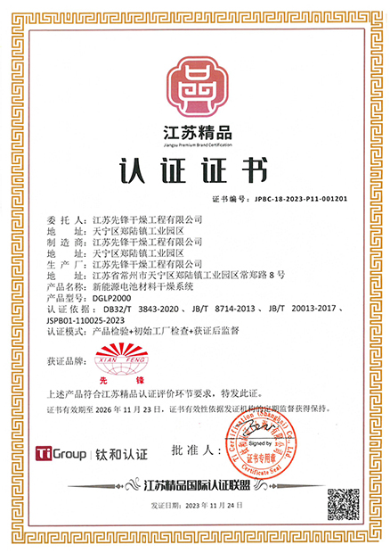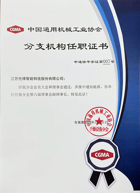 • 江苏先锋干燥省级技术中心证书