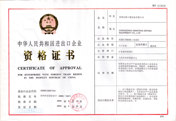 • 江苏省喷雾干燥研究中心证书