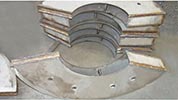 The most important feature of the paddle dryer is the paddle itself. The design of the paddle is a wedge-shape hollow hemicycle that allows material into its hollow grooves as the shaft turns. Within the paddle is one of the heat transfer components. The two main heat transfer surfaces of the paddle are sloped so that when material comes in contact with the surface, granules will slip away from the paddle. The bottom of the paddle is triangular so that it avoids any dead corners within the chamber.