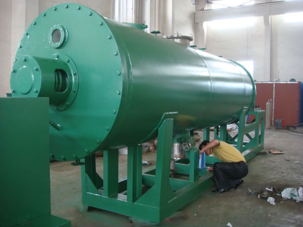 Il s'agit d'un sécheur à palette sous vide horizontale de type lot. L'humidité de la matière humide est évaporée par transmission thermique. L'agitateur et la raclette déplacent la matière première à partir de la surface chaude et la fait circuler dans le récipient. L'humidité évaporée est pompée par la pompe à vide.