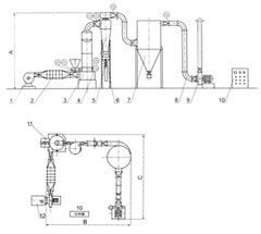 7. пылеуловительный мешок 8. трубопровод 9. вентилятор 10. шкаф управления 11. устройство подачи 12. воздушный фильтр |